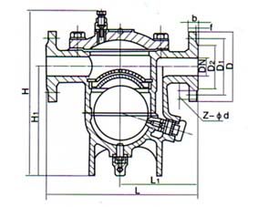 CS41H 自由浮球式疏水閥的結構簡單,內部只有一個精細研磨的不銹鋼空心浮球,既是浮子又是啟閉件,無易損零件,使用壽命很長。裝置剛起動時,管道內出現空氣和低溫冷凝水,手動排空氣閥能迅速排除不凝結氣體,疏水閥開始進入工作狀態,低溫冷凝水流進疏水閥,凝結水的液位上升,浮球上升,開啟閥門。裝置很快提升溫度,管道內溫度上升到飽和溫度之前,自動排空氣閥已經關閉;裝置進入正常運行狀況,凝結水減少,液位下降,浮球隨液位升降調節閥孔流量;當凝結水停止進入時,浮球隨介質流向逼近閥座,關閉閥門。自由浮球式蒸汽疏水閥的閥座總處于液位以下,形成水封,無蒸汽泄漏。