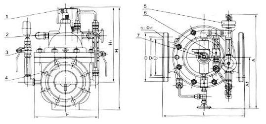 當水泵停止工作時,電磁導閥先關閉,主閥控制室停止排水,控制室壓力升高,主閥開始關閉。當關閉至90%時,主閥上部行程開關輸出停泵信號,水泵停止運轉。此時下游回水經單向閥進入主閥控制室,控制室壓力升高,主閥被關閉 三、700X多功能水泵控制閥--主要技術參數